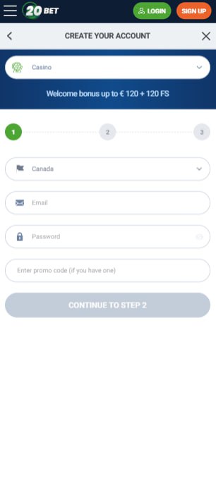 Registrácia v kasíne 20bet