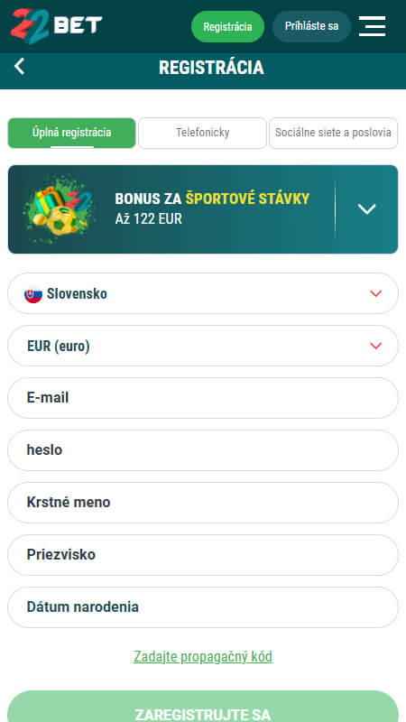 | Niekoľko minút/hodín | support-en@22bet.com | |