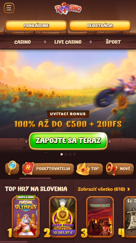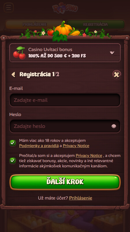 Otvorte web – na desktopovom alebo mobilnom zariadení prejdite na roostino.com či lokálnu verziu a kliknite na tlačidlo registrácie.
