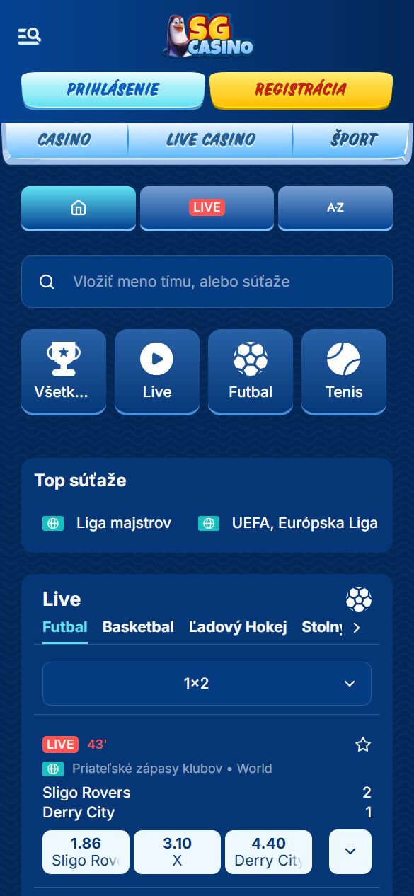 Okrem kasínových hier ponúka SG Casino aj možnosť športového stávkovania. Hráči si môžu vsadiť na širokú škálu športov, vrátane: