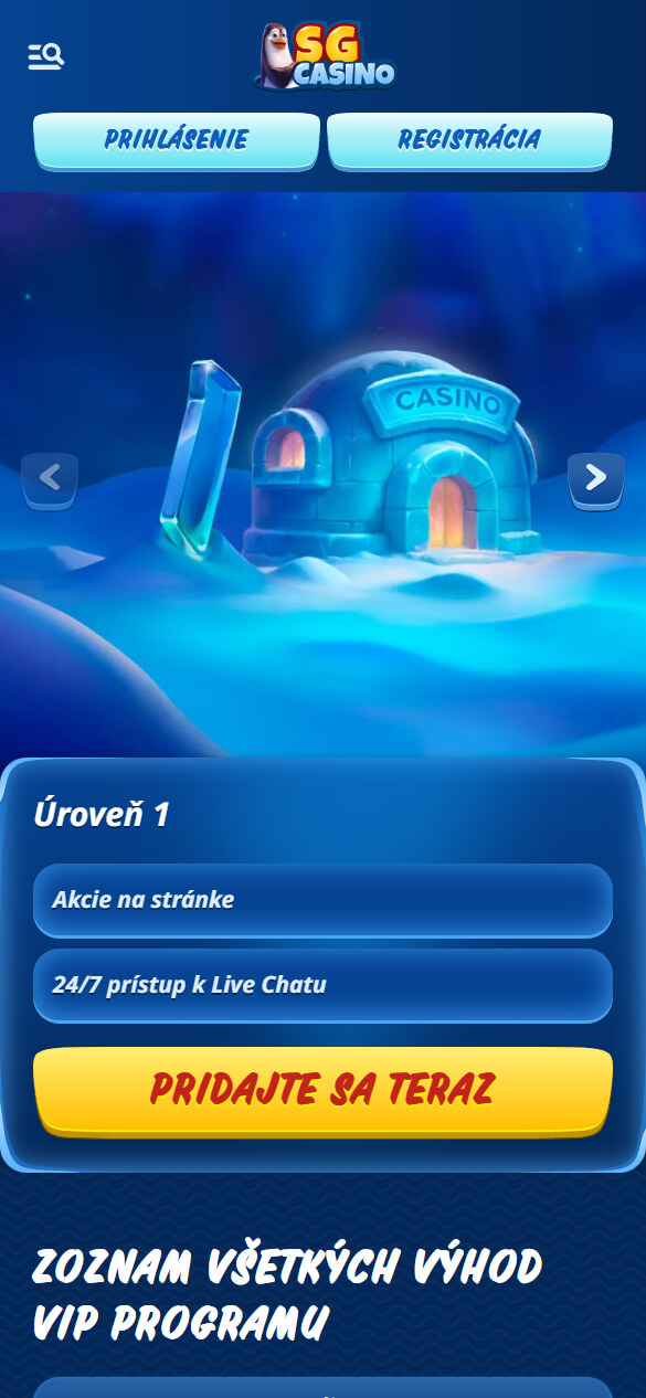 SG Casino má vernostný program, ktorý odmeňuje pravidelných hráčov. Za každú stávku získavate body, ktoré môžete vymeniť za bonusy, točenia zdarma alebo ďalšie výhody. Čím viac hráte, tým vyššiu úroveň v programe dosiahnete. Maximálna úroveň je 5 čo hráčom prináša ešte lepšie odmeny a benefity. Tento program je známy tiež ako VIP program.