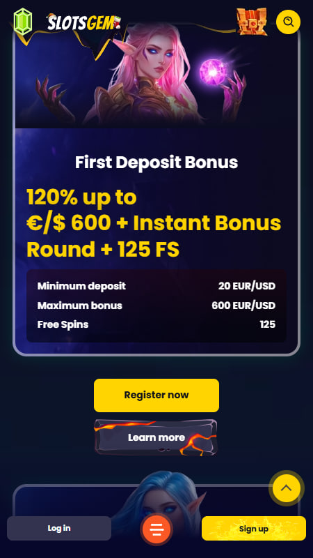 SlotsGem ponúka viacero stupňov uvítacej ponuky. Za prvý vklad si môžete pripísať 120 % až do 600 € + 125 TZ + okamžité bonusové kolo. Minimálny vklad má úroveň 20 € a bonusové prostriedky je potrebné prestávkovať do 7 dní.