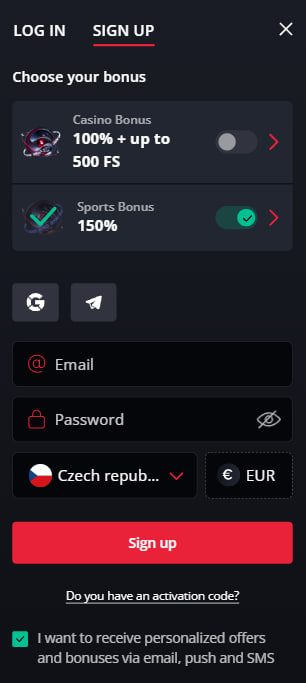 - Kliknutím na tlačidlo “Sign up” dokončite registráciu.