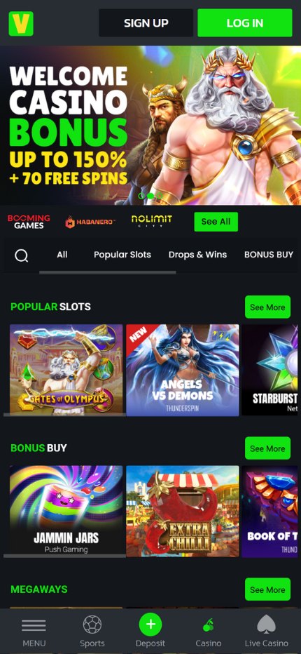 Velobet zaujme moderným dizajnom, ktorý je ladený do čiernej a zelenej, čím vytvára dynamickú a zaujímavú atmosféru. Táto farebná schéma je nielen estetická, ale aj praktická, pretože vás vtiahne do hry.