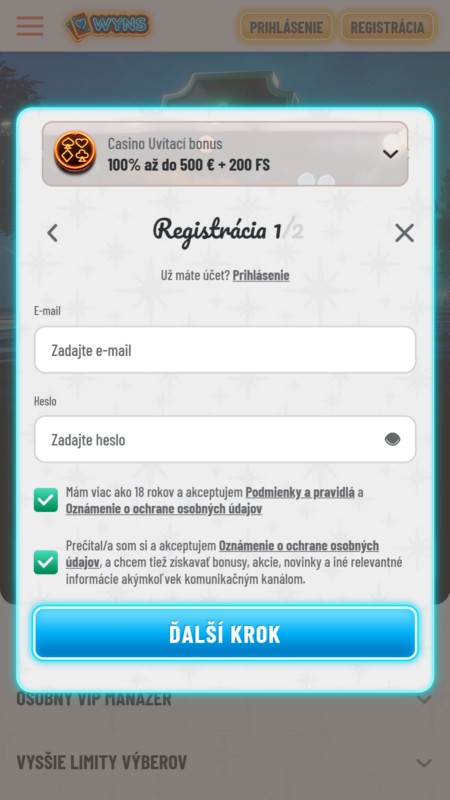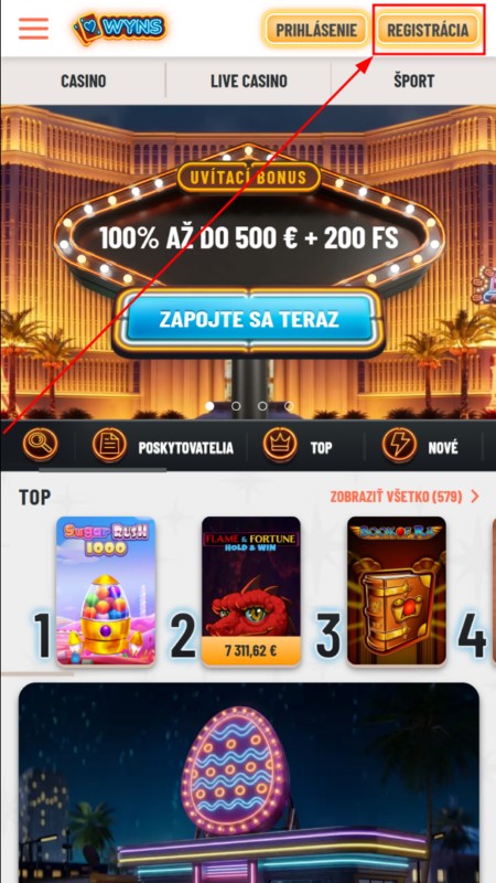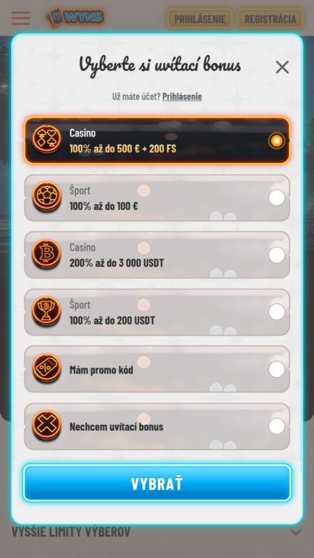 Wyns chce konkurovať širokou ponukou hier aj samostatnou stávkovou sekciou. Oficiálny web potvrdzuje slovenčinu v jazykovom menu, live chat, Telegram, VIP úrovne, live kasíno a športové stávkovanie.