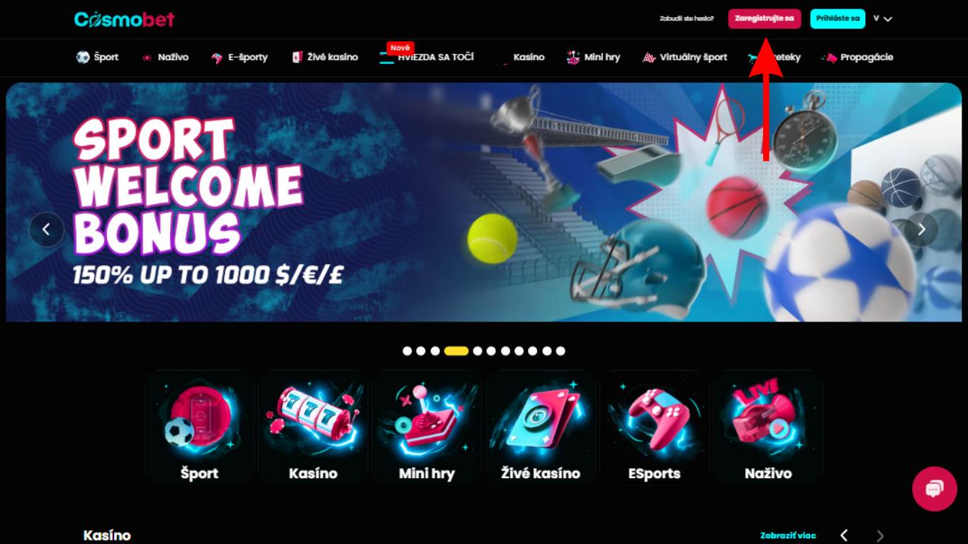 Ak však preferujete kasínové hry, aj v tomto smere má Cosmobet čo ponúknuť. Pre zmenu prostredia stačí v hornej lište prejsť zo sekcie Sports Betting do sekcie Casino alebo Casino live games, kde nájdete všetky dostupné hry.