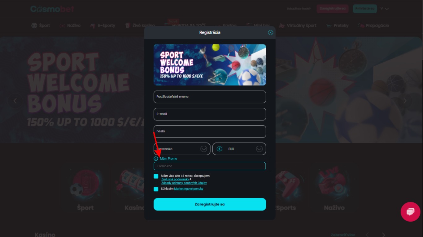 Registrácia v stávkovej kancelárií Cosmobet