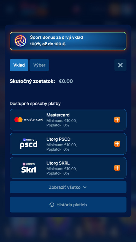 100 % až do 100 € v podobe stávok zdarma, min. vklad 20 €