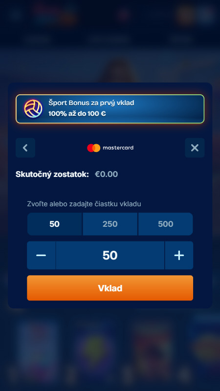 Reload bonusy – týždenný reload bonus 50 % až do 500 eur a víkendový reload bonus 50 % až do 750 eur.