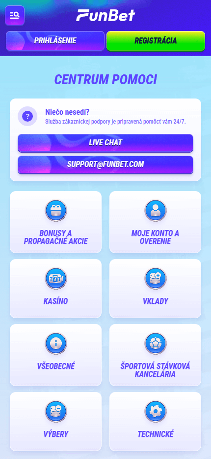 Stránka FunBet je dostupná v niekoľkých jazykoch, vrátane slovenčiny, angličtiny, češtiny a ďalších, čo uľahčuje orientáciu pre hráčov z rôznych krajín. Technická podpora je pripravená pomôcť s registráciou, vkladmi, výbermi aj s riešením akýchkoľvek problémov týkajúcich sa stávok či promo akcií.