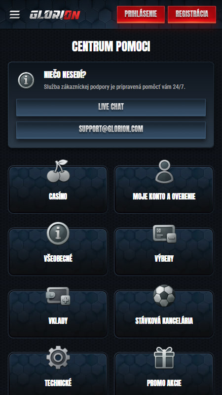 Hoci je Glorion silný v stávkach, ich kasíno sekcia za nimi vôbec nezaostáva. Nájdete tam tisíce automatov od klasických ovocníčkov až po moderné video sloty s bonusovými funkciami. Ak máte radi napätie naživo, live kasíno ponúka ruletu, blackjack a baccarat so skutočnými krupiérmi. Pre milovníkov rýchlej akcie sú tu crash hry ako Aviator, kde rozhodujú sekundy. Ponuku dopĺňajú rôzne kartové hry a stoly, ktoré bežia plynulo aj na mobile.