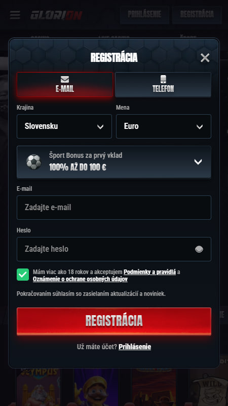 Registrácia v Glorion stávkovej platforme