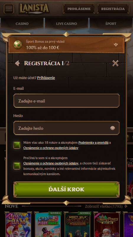 Tipovať cez mobil je na Lanista naozaj bez komplikácií. Samostatnú aplikáciu síce kasíno neponúka, no moderná responzívna verzia webu plne nahrádza všetko, čo by ste od nej očakávali. Celá stránka sa prispôsobí telefónu aj tabletu a jednotlivé hry sa načítajú rýchlo a v rovnakej kvalite ako na počítači – či už ide o automaty, stolové hry alebo live kasíno miestnosti.