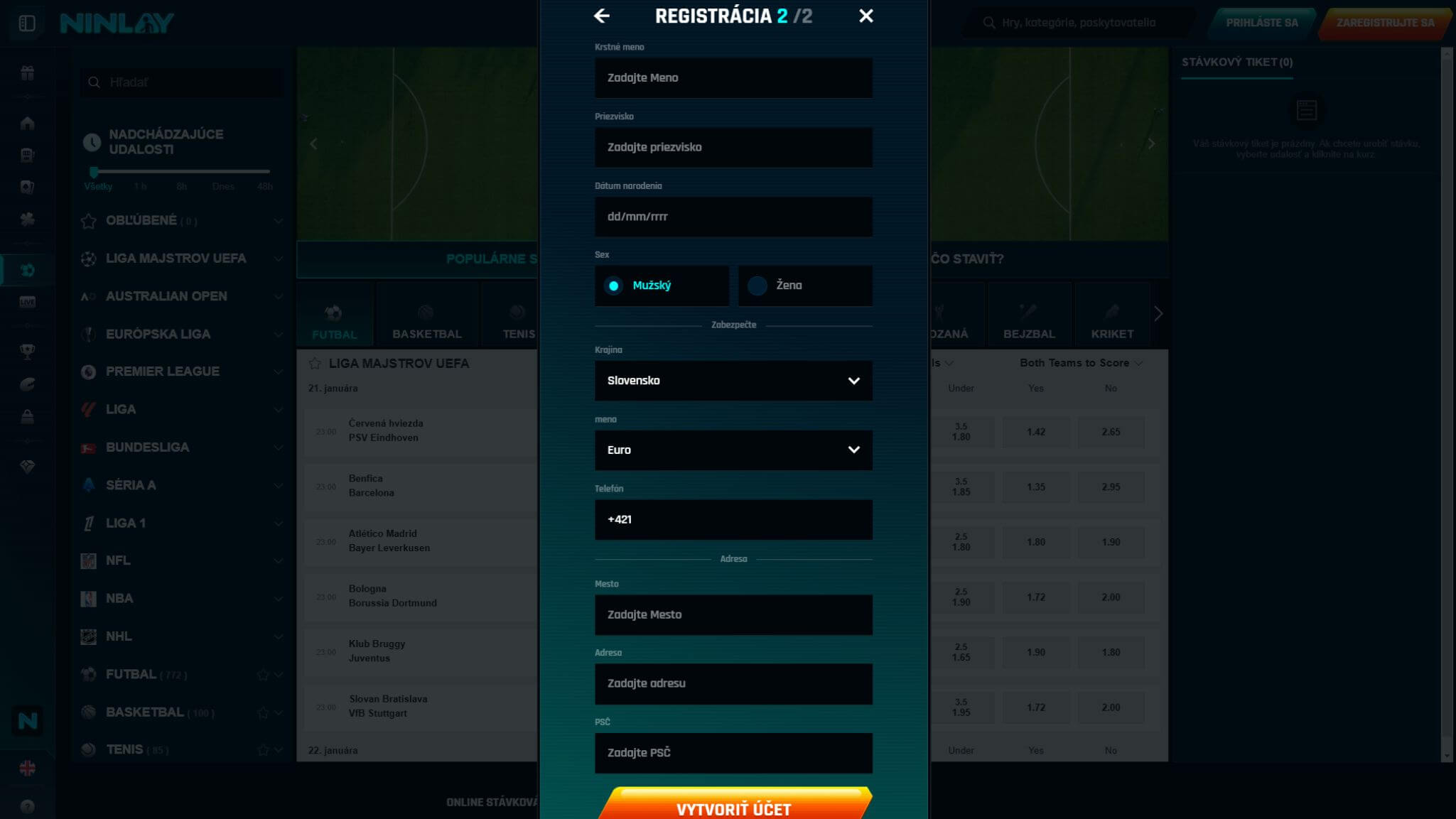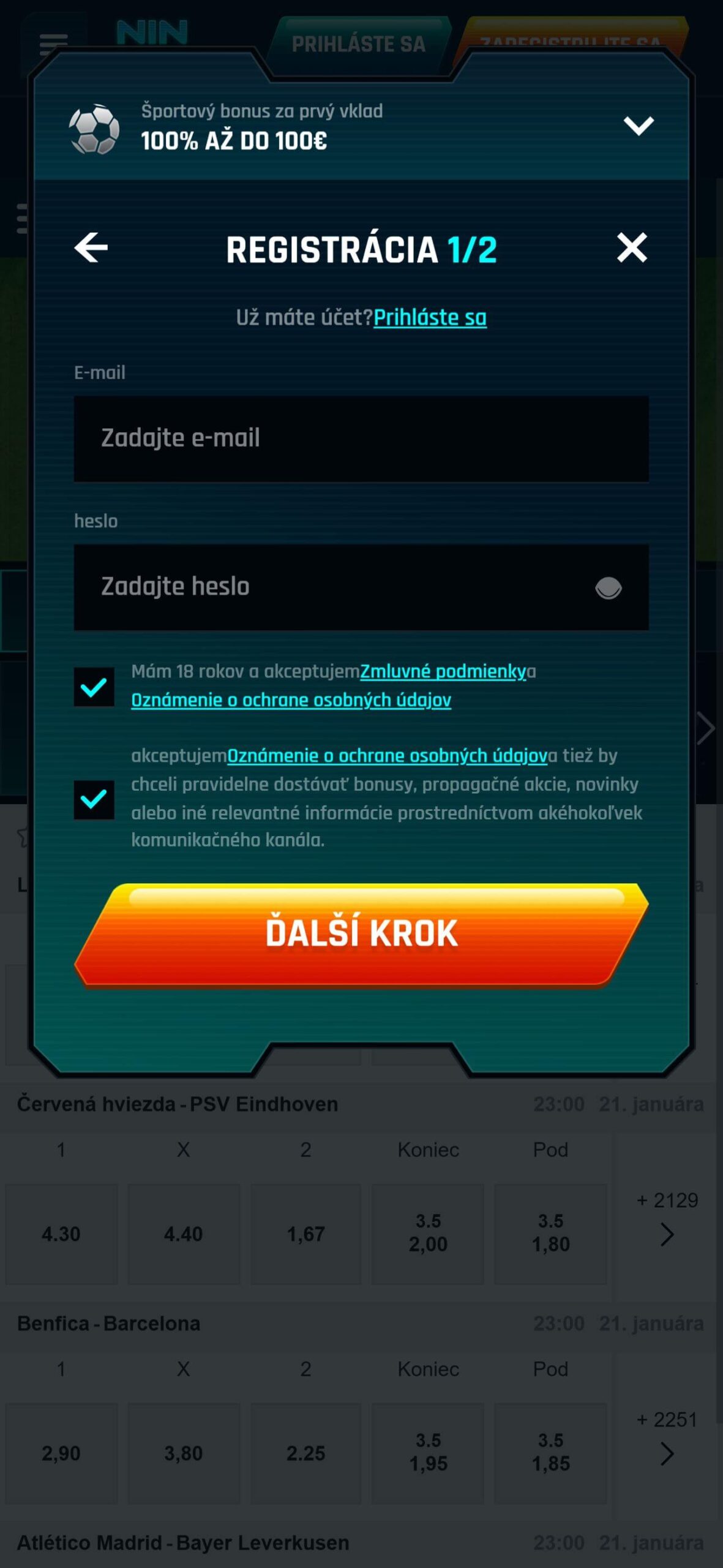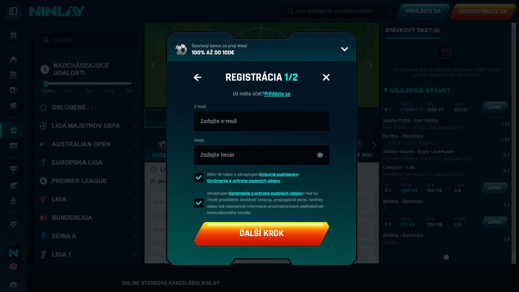 Proces registrácie na Ninlay je rýchly a jednoduchý, takže sa môžete okamžite zapojiť do stávkovania a využiť všetky dostupné bonusy. Postupujte podľa týchto krokov: