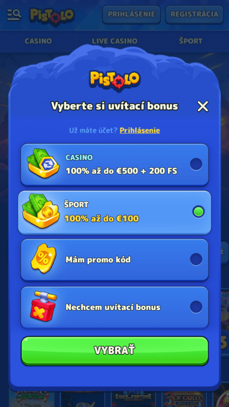 Pistolo ponúka atraktívne bonusy pre nových aj pravidelných stávkarov. Uvítací bonus je doplnený akciami ako cashback a voľné stávky. Nižšie nájdete súhrn momentálnej bonusovej ponuky: