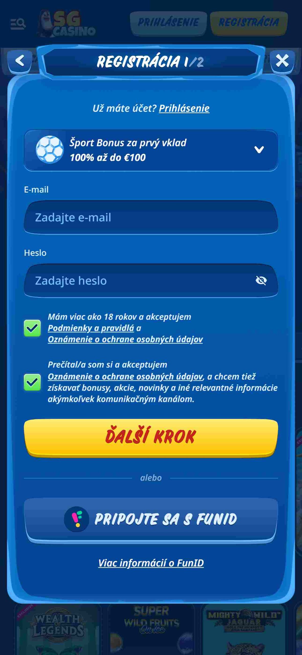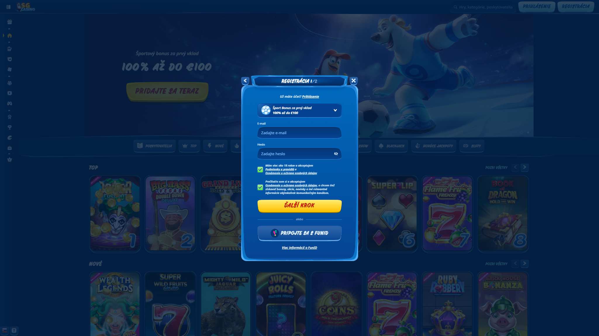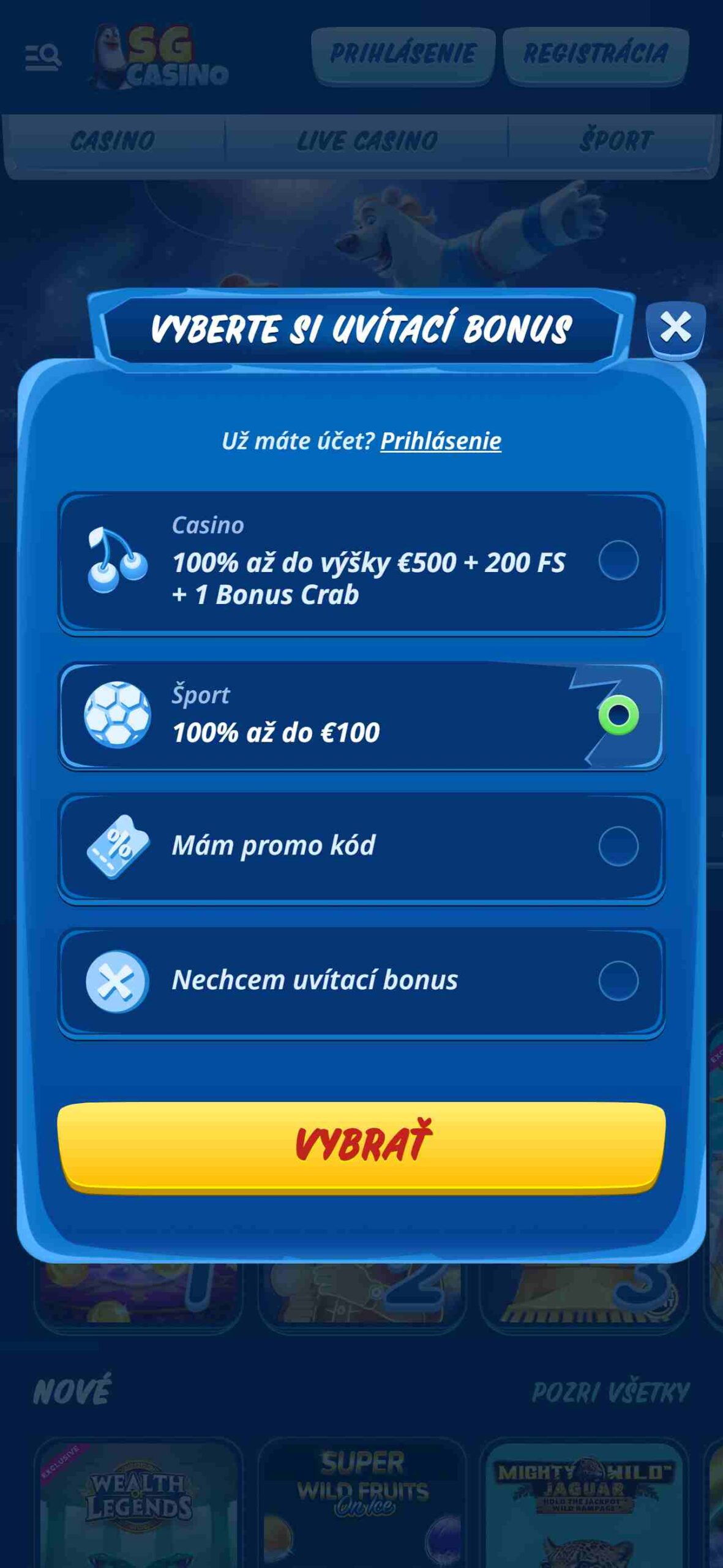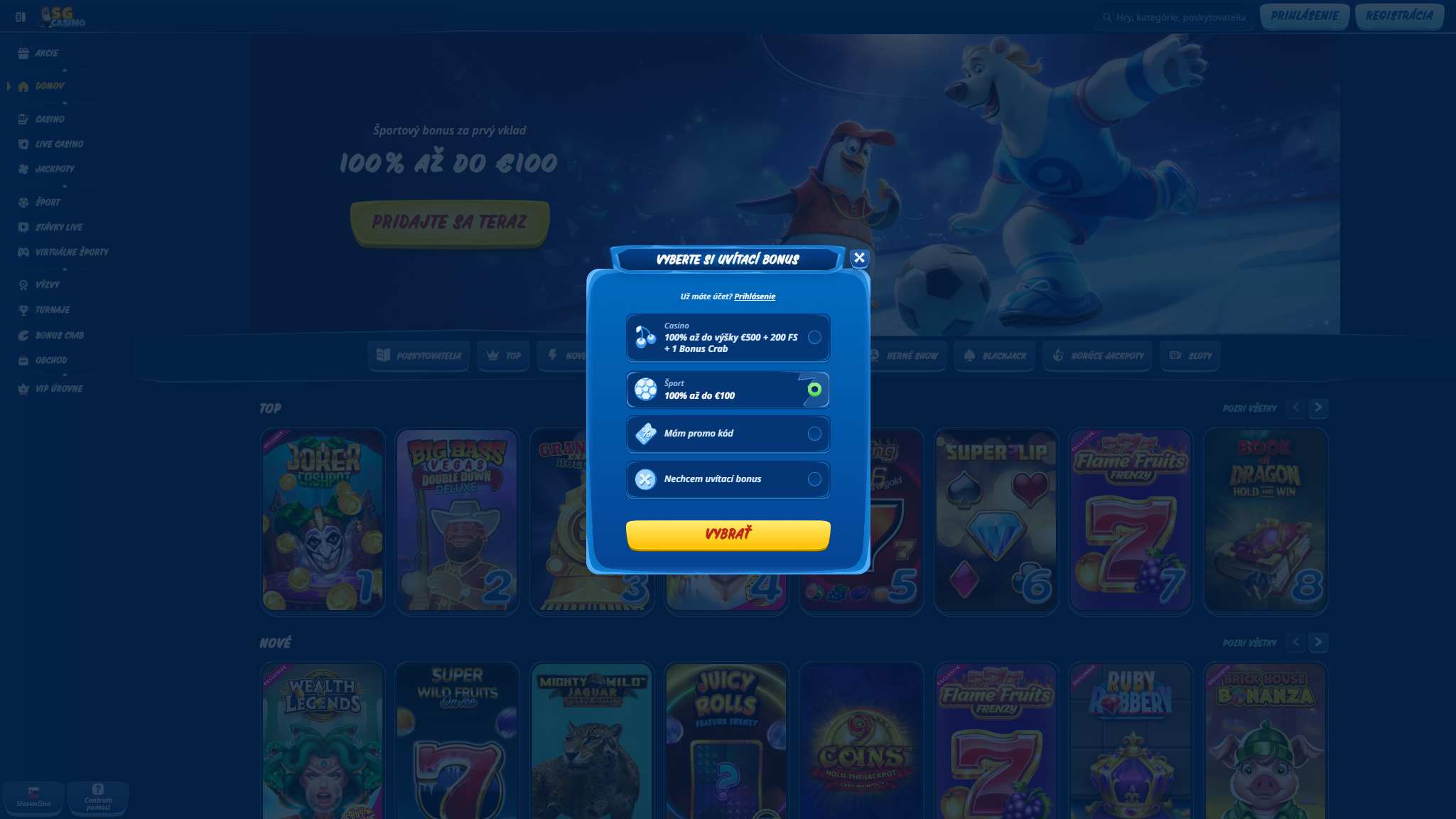 Vaša registrácie je hotová teraz si môžete prezrieť stránku SGCasino a začať uzatvárať stávky.