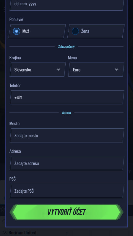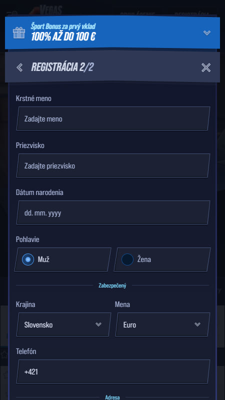 Po kliknutí na Ďalší krok sa zobrazí finálna časť formulára, kde doplníte osobné údaje, adresu, krajinu, menu a telefónne číslo.