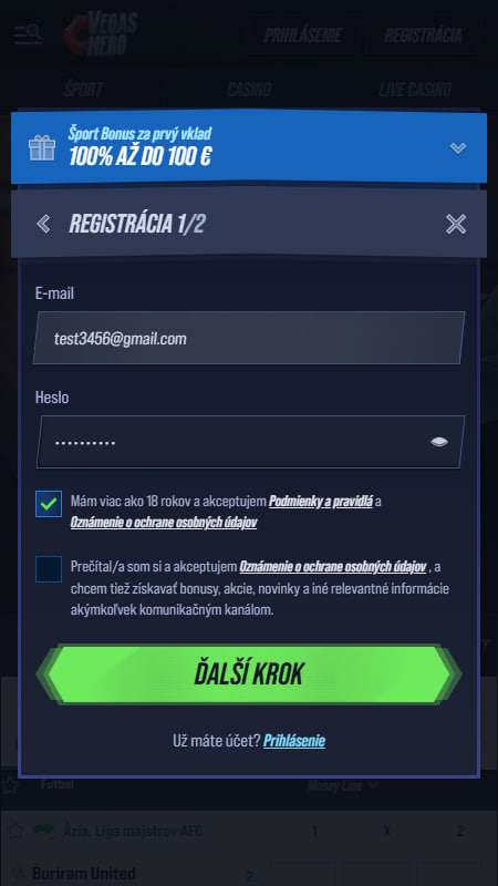 Registrácia na VegasHero je jednoduchá a zvládne ju aj úplný začiatočník. Celý proces prebieha priamo na stránke a nezaberie viac než pár minút. Postup vyzerá približne takto: