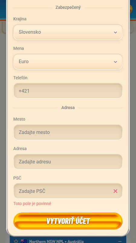 Registrácia: Pri vytváraní účtu si vyberte športový uvítací bonus.