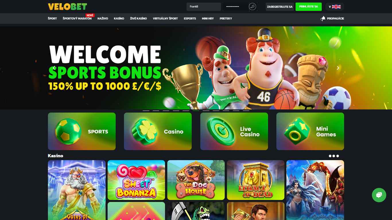 Velobet vyniká moderným a užívateľsky prívetivým dizajnom. Stránka je ladená v odtieňoch čiernej a zelenej, ktoré pôsobia profesionálne, pútavo a pritiahnu vašu pozornosť.