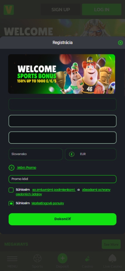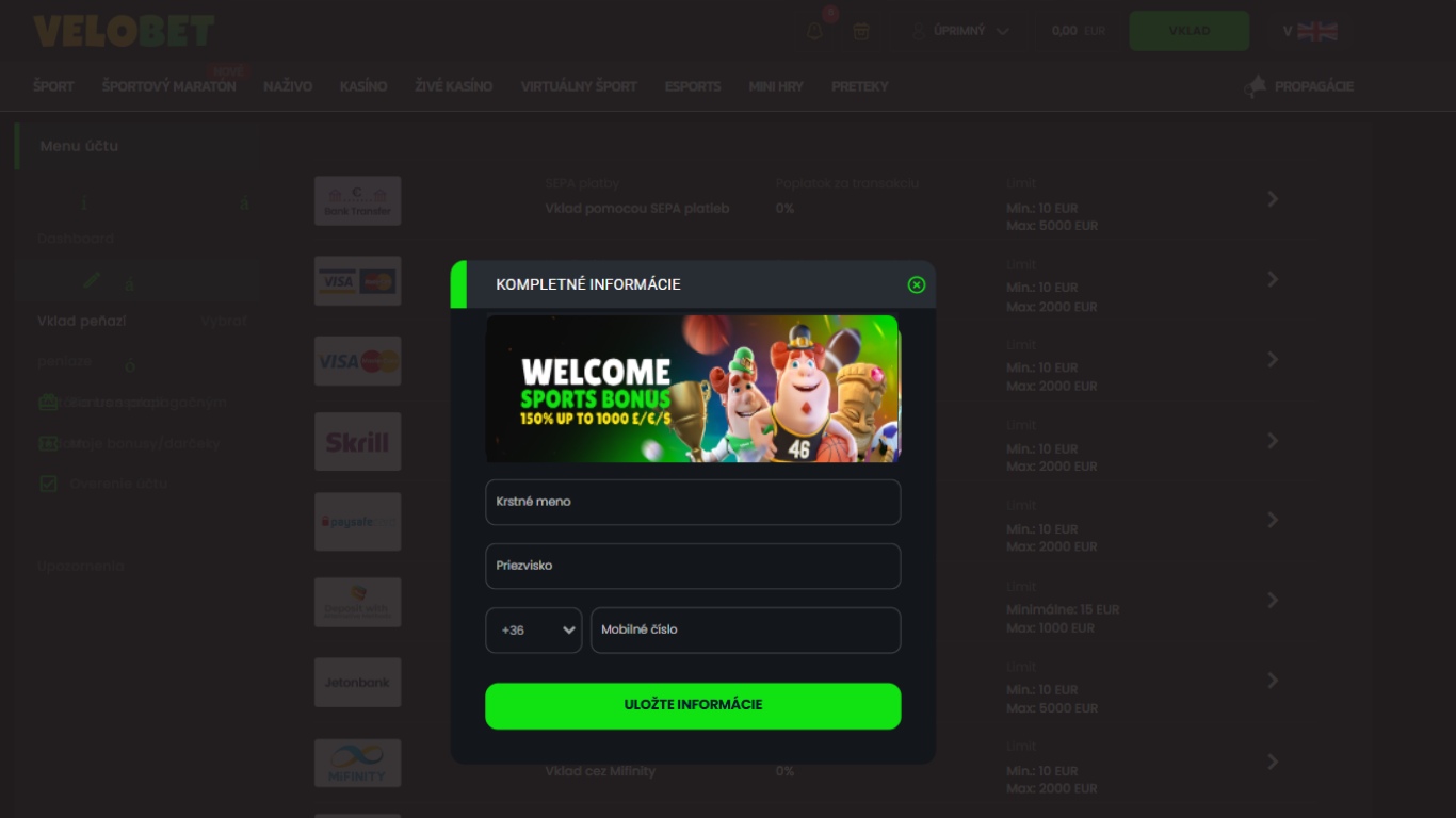 Registrácia na platforme Velobet